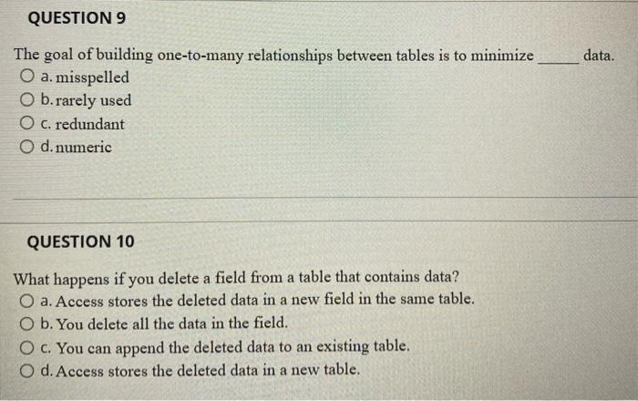 Solved Question 3 3 In You Define Or Modify A Table Chegg Com